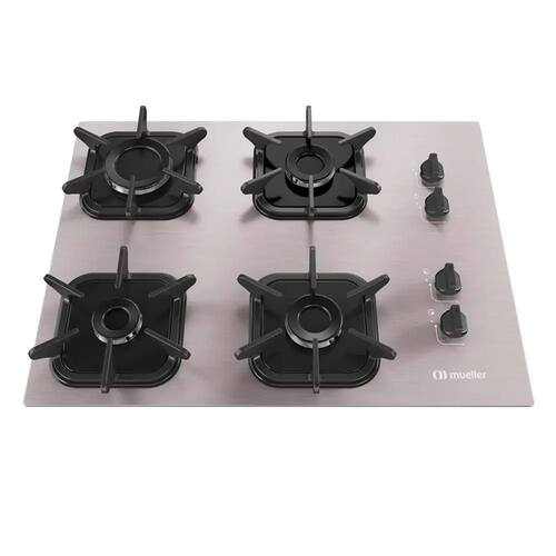 Cooktop Mueller 4 bocas de alumínio com queimador ultra chama, acendimento superautomático e grades em ferro fundido.Alimentação