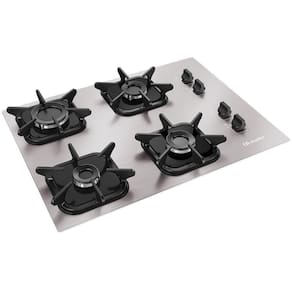 Ele ainda possui 1 Queimador Ultra Chama 2400 Watts de potência, 2 Queimadores semirrápidos de 1700 Watts de potência e 1 Queimador Auxiliar 1000 Watts de potência. Para cada um é indicado o tamanho ideal de panela.