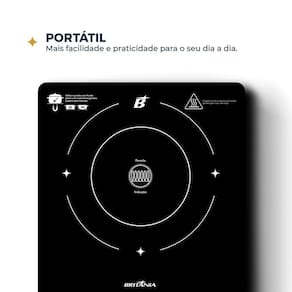 Com funções inteligentes como reconhecimento automático de panelas e desligamento de segurança em caso de superaquecimento, o Cooktop Portátil de Indução Britânia BCT10A une tecnologia, eficiência e estilo em um só produto, oferecendo conveniência e tranquilidade no dia a dia.