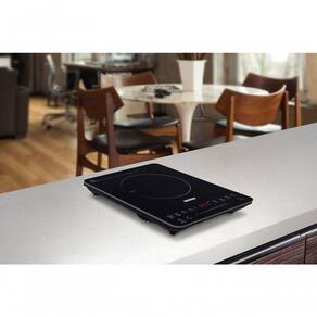 Modo de uso: O Cooktop Portátil por Indução funciona em 127 V, não é bivolt. Não utilize o cooktop com panelas de diâmetro superior a 260 mm. Não utilize o cooktop sobre superfícies metálicas como por exemplo, pias e bancadas de aço inox. Não bloquear as aberturas de entrada e saída de ar, a fim de evitar danos no aparelho. O cooktop portátil por indução, não deve ser instalado embutido. Nunca utilizar a mesa vitrocerâmica como superfície de trabalho ou para apoiar objetos. Se for percebida qualquer rachadura na mesa vitrocerâmica, desligar imediatamente o produto e desconectar da rede elétrica. Pessoas que utilizam marca-passo e próteses metálicas devem consultar um médico antes de utilizar o cooktop por indução. Colocar sempre a panela no centro da área de aquecimento. Para o correto funcionamento do cooktop é necessário que o fundo das panelas contenha materiais de indução magnética, ou seja, metal ferroso. As panelas mais indicadas são as de aço inox ou de ferro. As panelas utilizadas no cooktop por indução devem ter o fundo plano, para que fiquem em contato com toda a área de aquecimento. Utilize um imã para verificar se a panela é adequada para o cooktop por indução. Se o imã for atraído pela base da panela, esta é apropriada para este tipo de aparelho. Panelas que não devem ser utilizadas: barro, vidro, alumínio, cerâmica, cobre e outros materiais não magnéticos. A limpeza da superfície vitrocerâmica deve ser realizada sempre com ela fria. Entretanto, quando objetos plásticos, folhas de alumínio, e alimentos que em sua composição contenham açúcar, entrarem em contato com a superfície vitrocerâmica aquecida, será necessário retirar estes resíduos enquanto ela estiver quente, utilizando uma esponja macia umedecida com água. Após a superfície vitrocerâmica esfriar, poderá não ser possível remover estes resíduos derretidos (açúcar, plástico ou papel alumínio). Para uma limpeza perfeita a Tramontina disponibiliza a venda da pasta de limpeza, para polir e remover manchas em superfícies de vidro / vitrocerâmicas.