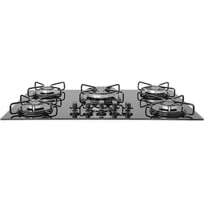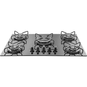 5 queimadores a gás, Mesa em vidro temperado, Acendimento superautomático, Botões multifuncionais removíveis, Trempes de aço esmaltado.Luz de calor residual