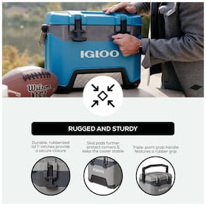 Coloque o tamanho em perspectiva Comporta 37 latas. Paredes isoladas com espuma extra grossa e tampa isolada proporcionam desempenho superior de retenção de gelo. A tecnologia Cool Riser melhora o desempenho de refrigeração, elevando o corpo mais frio para longe de superfícies quentes. Dobradiças superdimensionadas e ferragens de aço inoxidável prolongam a vida útil do produto. A construção moldada por sopro resistente oferece durabilidade avançada Marca: Não Informado