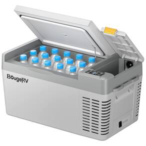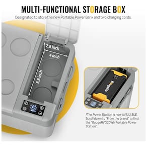 Caixa de zenamento generosa acomoda perfeitamente a estação de energia e acessórios O refrigerador CRPRO de 21 litros possui uma caixa de zenamento multifuncional onde você pode colocar a NOVA ESTAÇÃO DE ENERGIA PORTÁTIL para geladeiras ou os cabos de carregamento equipados dentro, o que aumenta o tempo de uso da geladeira e evita a falta de cabos. Pesquise BougeRV 220WH PORTABLE POWER STATION na se estiver procurando. 4 pontos de amarração de segurança fixa a geladeira ao seu carro Através de quatro orifícios localizados em ambos os lados da geladeira CRPRO, ela pode ser presa com segurança com cordas na caminhonete, assento e outras superfícies escorregadias. Não precisa se preocupar com o movimento da geladeira quando você dirige o carro. Modo Max e Eco Usage menor consumo de energia Com a tecnologia de refrigeração por compressor CRPRO, a geladeira 12 volts consome 45W no modo Max e apenas 36W no modo Eco, contribuindo para a economia. Este refrigerador atualizado também adiciona uma luz LED interna para você usar à noite. Você também pode usar esta geladeira para fazer compras e manter os alimentos frescos. Baixo ruído sono silencioso O freezer do caminhão foi projetado com 45dB de baixo ruído para garantir que você durma bem após uma longa viagem. Este refrigerador de camping também possui um design à prova de choque para enfrentar a estrada irregular, operando sem problemas em caso de inclinação de 30 quando você estiver fora da estrada Marca: Não Informado