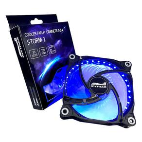 Informações Adicionais\n A cada dia os processadores e placas de vídeo estão mais potentes, com clocks mais altos, assim a refrigeração do sistema é fundamental para garantir o funcionamento correto e integridade dos componentes.A principal função do Cooler Fan Storm 2 é manter a circulação de ar de forma correta, levando o ar quente para fora e puxando o ar gelado de fora para dentro. Possui LED (Branco - Vermelho - Azul) para dar uma nova cara ao seu gabinete, rolamento do tipo FDB (Fluid Dynamic Bearing)/Sleeve, baixo nível de ruído e consumo de energia, fluxo de ar 65CFM e 1200RPM de velocidade.\n \nCaracterísticas\n Modelo: Storm 2Cor: PretoLED: Azul - 33 LedsDimensões da Ventoinha (mm): 120Tensão: 12V DCConsumo de Energia: 4.8WCorrente Nominal: 0.4AFluxo de Ar: 65 CFMVelocidade: 1200 RPMNível de Ruído: 22.5 dBATipo de Rolamento: FDB (Fluid Dynamic Bearing)/SleeveVida Útil: 20.000 horasConector: 3 Pinos/Molex 4PinosParafusos: 4Temperatura de Operação: -10 a 70 CCompatibilidade: CPUComprimento do Cabo (mm): Informação não disponívelInformativo de Garantia: 12 meses de garantia (9 meses de garantia contratual junto ao fabricante + 3 meses referentes à garantia legal, nos termos do artigo 26, II, do Código de Defesa do Consumidor)EAN: 7898554982476