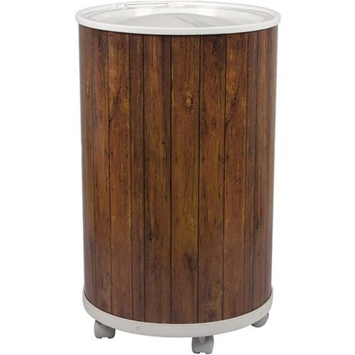 Cooler Madeira Rústica 75 Latas - Anabell Comprimento. 77cm Diâmetro 48cm Capacidade 75 Latas Material Poliuretano expandido, Isopor prensado e plástico. Caracteristicas Geleira térmica de grande capacidade, que dispõe de 5 rodízios para facilitar seu deslocamento e utilização. Composto em seu interior, por isopor prensado, o que dificulta a troca de temperatura com o meio ambiente. Indicado para ser com gelo, permitindo que a bebida seja resfriada rapidamente, sem congelá-la, mantendo-se, assim, a temperatura ideal para o consumo, por muitas horas. O rótulo apresenta cores vivas e imagem nítida. É bastante resistente e à prova d'água, pois é impresso em lâmina plástica. Não se trata, portanto, de um adesivo, que se rasga e descola facilmente. A tampa é transparente e injetada em plástico com elasticidade, dificultando que se quebre. Dispõe de uma mangueira para drenar a água do interior do cooler. Sua altura de 77 cm permite o manuseio das bebidas e gelo confortavelmente. 6 meses Marca: Não Informado