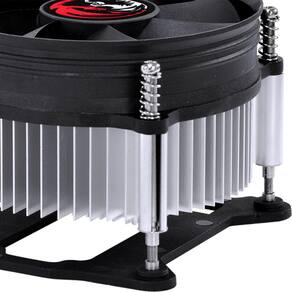 O dissipador em alumínio auxilia na distribuição do calor absorvido entre suas aletas, para que depois o fan possa resfriá-las com maior eficiência.