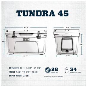 O YETI Tundra 45 combina versatilidade com durabilidade com capacidade para até 26 latas com uma proporção recomendada de 21 gelo, conteúdo. O gelo permanece gelado graças a até 3 polegadas de isolamento PermaFrost e um design FatWall extra espesso com certificação Bear Resistant. A construção rotomoldada torna a Tundra blindada até o núcleo e virtualmente indestrutível, portanto, onde quer que você decida levá la, a construção robusta deste refrigerador portátil resistirá aos rigores da jornada. Todos os refrigeradores Tundra apresentam travas de tampa T Rex construídas em borracha resistente para que você nunca veja outra trava quebrada e possui tecnologia de proteção patenteada Marca: Não Informado