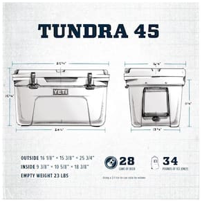 O YETI Tundra 45 L combina versatilidade com durabilidade com capacidade para até 26 latas com uma proporção recomendada de 21 gelo, conteúdo. O gelo permanece gelado graças a até 3 polegadas de isolamento PermaFrost e um design FatWall extra espesso com certificação Bear Resistant. A construção rotomoldada torna a Tundra blindada até o núcleo e virtualmente indestrutível, portanto, onde quer que você decida levá la, a construção robusta deste refrigerador portátil resistirá aos rigores da jornada. Todos os refrigeradores Tundra apresentam travas de tampa T Rex construídas em borracha resistente para que você nunca veja outra trava quebrada e possui tecnologia de proteção patenteada Marca: Não Informado