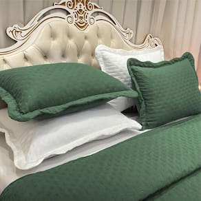 Coordenado cobre leito casal e lençol diplomata 7 peças - verde Coordenado cobre leito casal dupla face e lençol diplomata 7 peças
