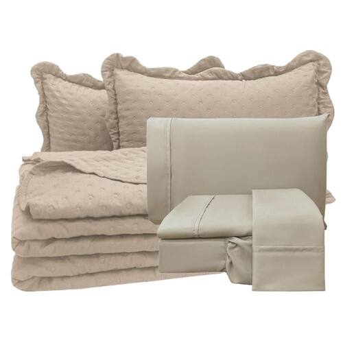Coordenado cobre leito queen e lençol diplomata 7 peças - cáqui Coordenado cobre leito queen dupla face e lençol diplomata 7 peças
