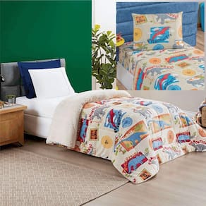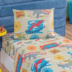 Coordenado Edredom E Lençol Diverkids Solteiro 4 Peças - Dinossauro Coordenado coberdrom edredom e lençol solteiro 4 peças