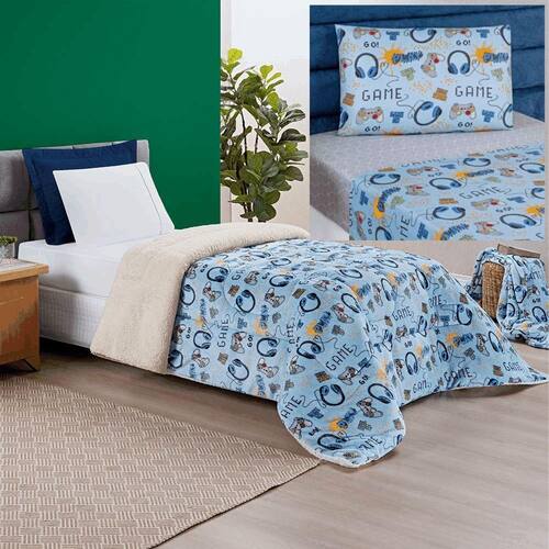 Coordenado Edredom E Lençol Diverkids Solteiro 4 Peças - Game Coordenado coberdrom edredom e lençol solteiro 4 peças