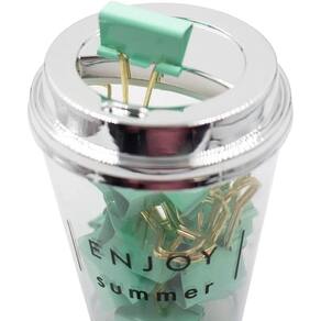 • Cor: preto/dourado. • Tamanho dos binders: 25mm. • Quantidade: 16 unidades. • Tampa com ímã. • Material do copinho: acrílico.