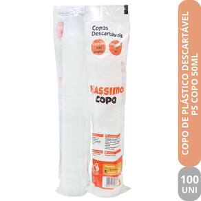 Adquira o Copo Descartável de 50 ml da marca Massimo Copo, feito de poliestireno atóxico e resistente. Ideal para uso diário, festas e empresas, disponível em embalagens de 100 unidades.