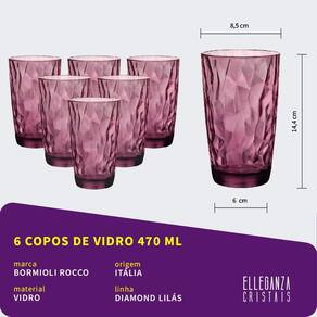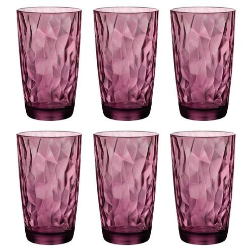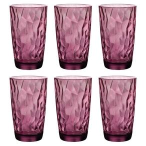 JOGO COM 6 COPOS DE VIDRO PARA ÁGUA 470 ML LILÁS LINHA DIAMOND BORMIOLI ROCCO