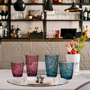 DETALHES DO PRODUTO Material: Vidro Origem: Produto importado da Itália Produto: Copos de Vidro Quantidade: 06 copos Capacidade: 470 ml cada copo Cor: Lilás Tamanho: 14,4 cm de altura, 8,5 cm de diâmetro de bocal e 6 cm de diâmetro de base Marca: Bormioli Rocco Linha: Diamond Embalagem: Os produtos são cuidadosamente envolvidos por plástico bolha e entregues na caixa do fabricante, inserida em uma caixa reforçada para assegurar a integridade dos produtos no transporte. Substituímos produtos danificados no transporte.