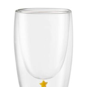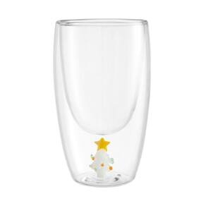 O Copo Alto Arvore de Natal tem capacidade de 350 ml e é produzido em vidro borossilicato, um material leve e resistente. Com parede dupla, não esquenta o vidro externo dando mais conforto ao manusear. No clima natalino, na base do copo um delicado pingente está fixo por uma haste entre as paredes do copo.