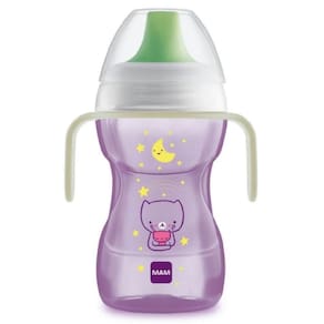 Copo Anti-Vazamento Fun To Drink Night Rosa - Mam O Copo Antivazamento Fun To Drink Night da Mam foi desenvolvido com design inovador para auxiliar o pequeno nessa nova fase de alimentação, sendo ideal para a transição do bebê. Possui sistema antivazamento, seu formato proporciona um fácil manuseamento, sendo fácil de segurar. Com um bocal rígido, que facilita a transição do copo de treino para o copo comum. As alças do copinho, foram especialmente desenhadas para as pequenas mãos dos pequenos. Ideal para utilização durante a noite, com alça brilha no escuro.