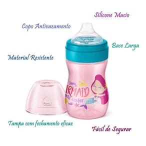 Contém: 1 copo com tampa 240 ml Modelo: Sereia ou Super Hero Copo com graduação Indicado para crianças de 12 meses ou mais 12m+ Composição: Frasco, rosca e tampa: polipropileno; Bebedor: silicone; Não expor à luz do sol, pois pode causar o envelhecimento precoce do produto Produto Livre de Bpa Retirar da embalagem antes de oferecer a criança Usar sempre sob a supervisão de um adulto