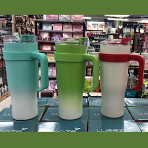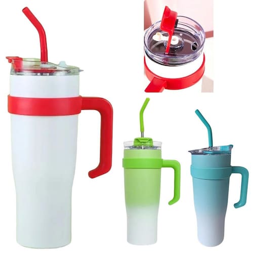 Que tal uma linda caneca copo térmico em aço inox 1200ml com tampa, canudo em inox, bico de silicone e alça pegador