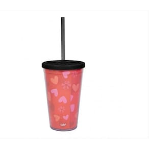 Material: tampa e copo: poliestireno. Canudo: polipropileno. Gelos: polietileno e água. Contém: 1 copo canudo de 500ml com 3 gelos reutilizáveis. Volume: 500ml Dimensões: 15,5 x 9,8 x 9,8 cm