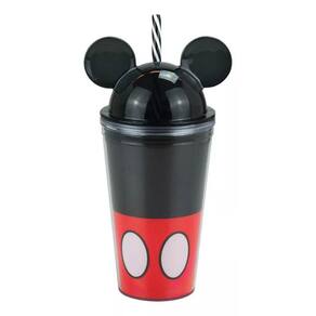 Copo de plástico com canudo capacidade para 450 ml. Tampa no formato das orelhas do Mickey. Material: plástico