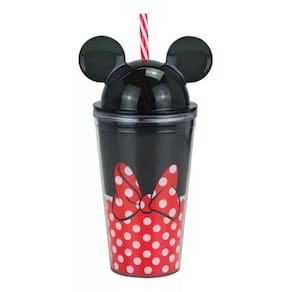 Copo de plástico com canudo capacidade para 450 ml. Tampa no formato das orelhas da Minnie. Material: plástico