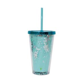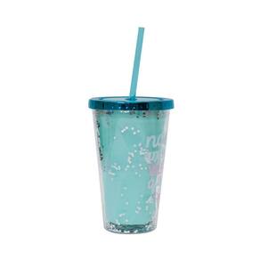 Copo de plástico verde com canudo, capacidade para 450 ml, parede dupla com preenchimento de glíter escrito Nossa amizade vale mais que um diamante.