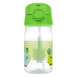 Canudo de silicone flexível Permite beber com o copo em pé Com tampa higiênica Com alça Não vazaCom travamentoCor: verdeCapacidade: 370 Ml Desenho: monstrinhosINMETRO: ocp0006