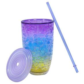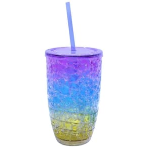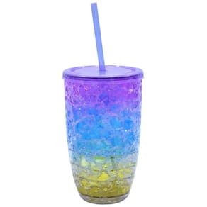 Copo com gel congelante colorido com tampa e canudo. Congele no freezer por 4 horas e tenha a bebida mais gelada. Capacidade 500 ml; Material: plástico