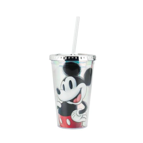 Copo Com Canudo Mickey 100 Anos 450ml - DisneyCopo Com Canudo Mickey 100 Anos 450ml - DisneyCopo com canudo, capacidade para 450ml, tampa prateada e com estampa do Mickey, corpo do copo é na cor metálica. . Detalhes:Material: Plástico acrilico.Peso: 170 gramas;Altura: 17cm;Largura: 10cm;Comprimento: 10cm.