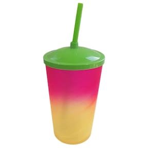 Conteúdo: 01 Copo com Canudo Degradê Tropical Pink Amarelo e Verde Acrílico com 700ml - 6 Unidades