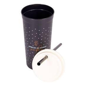 Copo com canudo slim - aprecie as coisas simples uatt Apresentamos o presente perfeito para alguém especial: um copo com tampa e canudo que combina praticidade, elegância e descontração em harmonia. Imagine um copo preto com bolinhas brancas, acompanhado por uma tampa branca e um canudo preto. Essa combinação harmoniosa é um convite para apreciar as coisas simples da vida. Feito de plástico polipropileno pp , o copo de 650ml possui dimensões de 8,6 x 23,5 x 8,6cm, oferecendo o tamanho ideal para desfrutar de suas bebidas favoritas. Além de sua aparência bonita, o copo também se preocupa com sua segurança e bem-estar. Livre de bpa bisfenol a , um componente químico prejudicial à saúde, você pode aproveitar sua bebida sem preocupações. Para manter o copo em perfeitas condições, basta lavá-lo com sabão e uma esponja macia. Evite o uso de abrasivos, não leve ao micro-ondas nem à lava-louças. E lembre-se, para transportá-lo, mantenha-o na posição vertical. Com seu design sofisticado e jovial, esse copo é mais do que um simples recipiente. Ele é uma expressão de estilo e personalidade. Presenteie alguém especial ou a si mesmo com esse copo que proporciona praticidade, elegância e descontração. Aprecie as coisas simples da vida com esse presente único Material: plástico polipropileno pp .Contém: 1 copo de 650ml, 1 tampa e 1 canudo.Dimensões: 8,6 x 23,5 x 8,6cm. Cuidados: lavar com sabão e esponja macia. Não utilizar abrasivos. Não levar ao micro-ondas e a lava-louças. Não é hermeticamente fechado, por isso para transportá-lo, é necessário que seja totalmente em posição vertical. Evite agitá-lo. Indicado para bebidas frias.