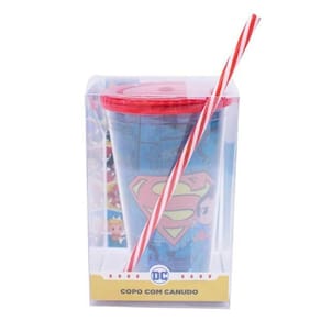 Copo com Canudo Super Homem DC Comics 450ml - Tasco Inport