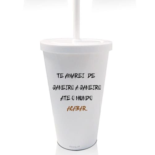 Copo Com Tampa E Canudo Branco - Até O Mundo Acabar - Para Dia Dos Namorados O Copo big de 550 ml ou copão 550 ml com tampa e canudo pode ser utilizado para diversos tipos de bebida. O copo é perfeito para presentear aquela pessoa que você ama da forma mais carinhosa possível. Não deixe de comemorar essa data tão especial com quem você ama. Especificações: Material: Poliestireno Acrílico PS , Altura: 14,5 cm, Diâmetro: 9,5 cm, Capacidade:550 ml, Cor: Branco Ean: 7897581926606