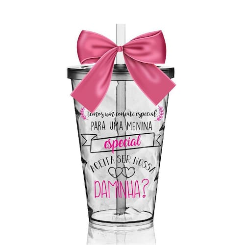 O Copo Convite é uma forma linda e deliciosa de convidar ou agradecer os pequenos por participarem de uma data tão única Com capacidade de 550 ml, você tem a opção de encher os copos com todo tipo de doce e assim encantar a futura Daminha O sim dela será GARANTIDO.