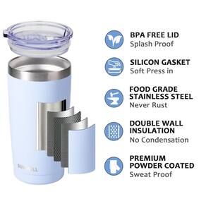 - Copo de café isolado de 590 ml: Tecnologia de isolamento a vácuo de parede dupla, mantém as bebidas quentes por mais de 6 horas e frias por cerca de 24 horas, à prova de suor, sem condensação