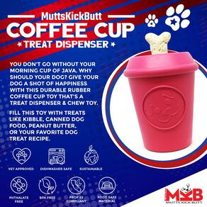 SodaPup Copo de café MuttsKickButt – Dispensador de petiscos para cães durável e brinquedo de mastigar feito nos EUA de borracha natural não tóxica, segura para animais de estimação, segura para alimentos para estimulação mental, problema de mastigação, calma os nervos, e mais