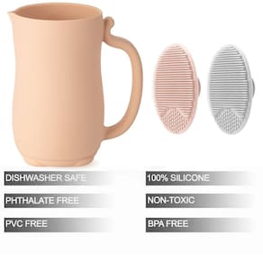Silicone macio e confortável: feito de silicone de qualidade alimentar em cores suaves, o copo de enxágue de banho PandaEar apresenta um exterior texturizado e uma alça conveniente.