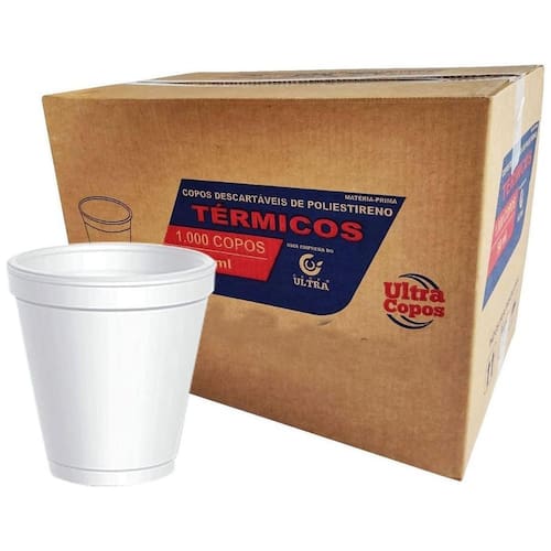Descrição: Material: Poliestireno Estendido. Cor: Branco Quantidade: 1 caixa com 1000 copos 40x20 Capacidade: 180ml Marca: Ultra Marca: Não Informado