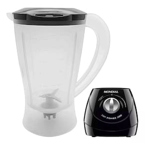 Copo de liquidificador Mondial Easy Power L-550, translúcido/leitoso, com tampa preta, capacidade de 1500ml, lâmina de 4 dentes em aço inox.Vendido por DOCA COMERCIO DE UTILIDADES LTDA e entregue por Casas Bahia