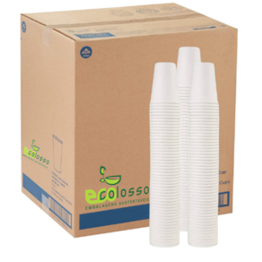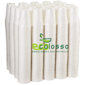 1000 unidades Copo de Papel de 180ml;Modelo branco;NÃO acompanha tampa;Medidas: 8,3 cm Altura x 7,6 cm diâmetro bocal x 4,6 diâmetro inferior;Papel de alta qualidade e revestido com resina importada natural para suportar altas temperaturas;Produto biodegradável e Sustentável (copo 100% ecológico)Marca: Ecolosso