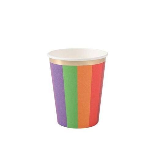- Nome do Produto: Copo de Papel 270ml Colorido Borda Dourada - Marca: Silver Plastic - Capacidade: 270ml - Quantidade por Pacote: 8 unidades - Material: Papel resistente e reciclável - Dimensões do Produto (AxLxC): 9cm x 7cm x 7cm - Dimensões da Embalagem (AxLxC): 13cm x 7cm x 7cm