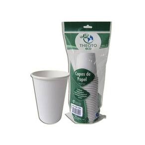 Reciclável e Biodegradável, os copos de papel Theoto podem ser utilizados para bebidas quentes e frias.