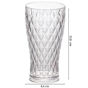 Kits com 6 copos de plástico com capacidade para 500ml. Produto integrante da linha Cristal Glamour, possui superfície facetada, seguindo as principais tendências do segmento de mesa posta e decoração. Produto versátil, possibilita infinitas produções casual ou chique. É produzido em material atóxico e livre de BPA e pode ser levado ao freezer.