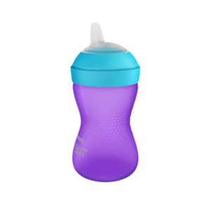Bico resistente a mordidas Com uma válvula anti-vazamento, textura anti-deslizante e formato ergonômico para as mãos da criança. Auxila na transição da criança para copos.