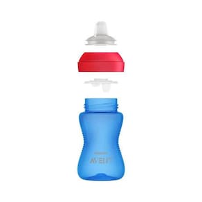 Bico resistente a mordidas com uma válvula anti-vazamento, textura anti-deslizante e formato ergonômico para as mãos da criança. Auxilia na transição da criança para copos.
