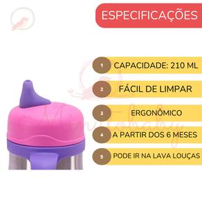 Segurança em Primeiro Lugar: Com alças laterais fáceis de segurar, esse copo é à prova de derramamentos, antivazamento e seguro para todas as posições. Seu líquido acompanha o movimento, evitando ingestão de ar e garantindo total segurança para o seu pequeno.