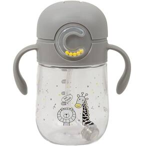 Com canudo retrátil, duas alças ergonômicas e chocalho de bolinhas.