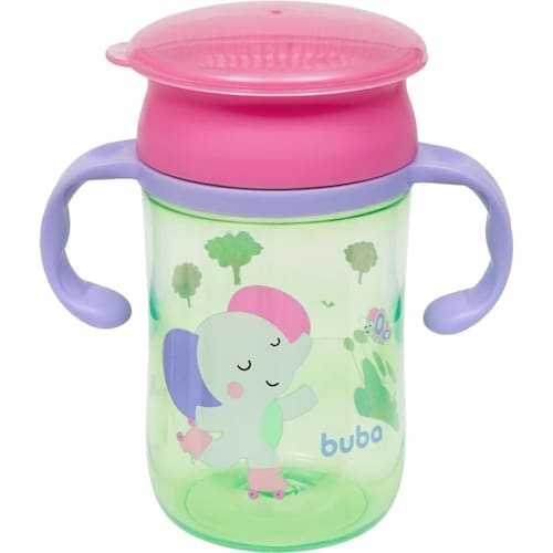 Com o Copo 360° com alça da Buba, seu bebê aprende a beber líquidos, de um jeito simples e prático, como um adulto. A válvula especialmente projetada e fácil de limpar, abre com pressão nos lábios, e fecha automaticamente assim que o bebê termina de beber. Com linda estampa de dinossaurinho e design lúdico, vai tornar a refeição mais divertida!